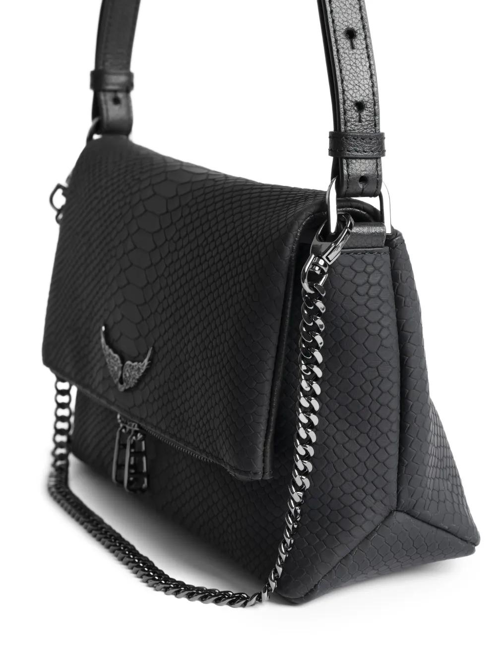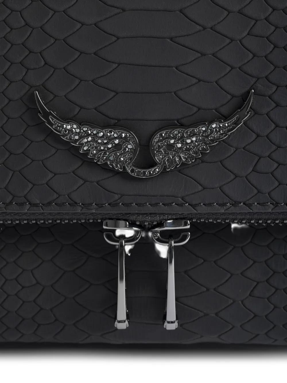 black snakeskin effect chain detail embellished wings adjustable shoulder strap