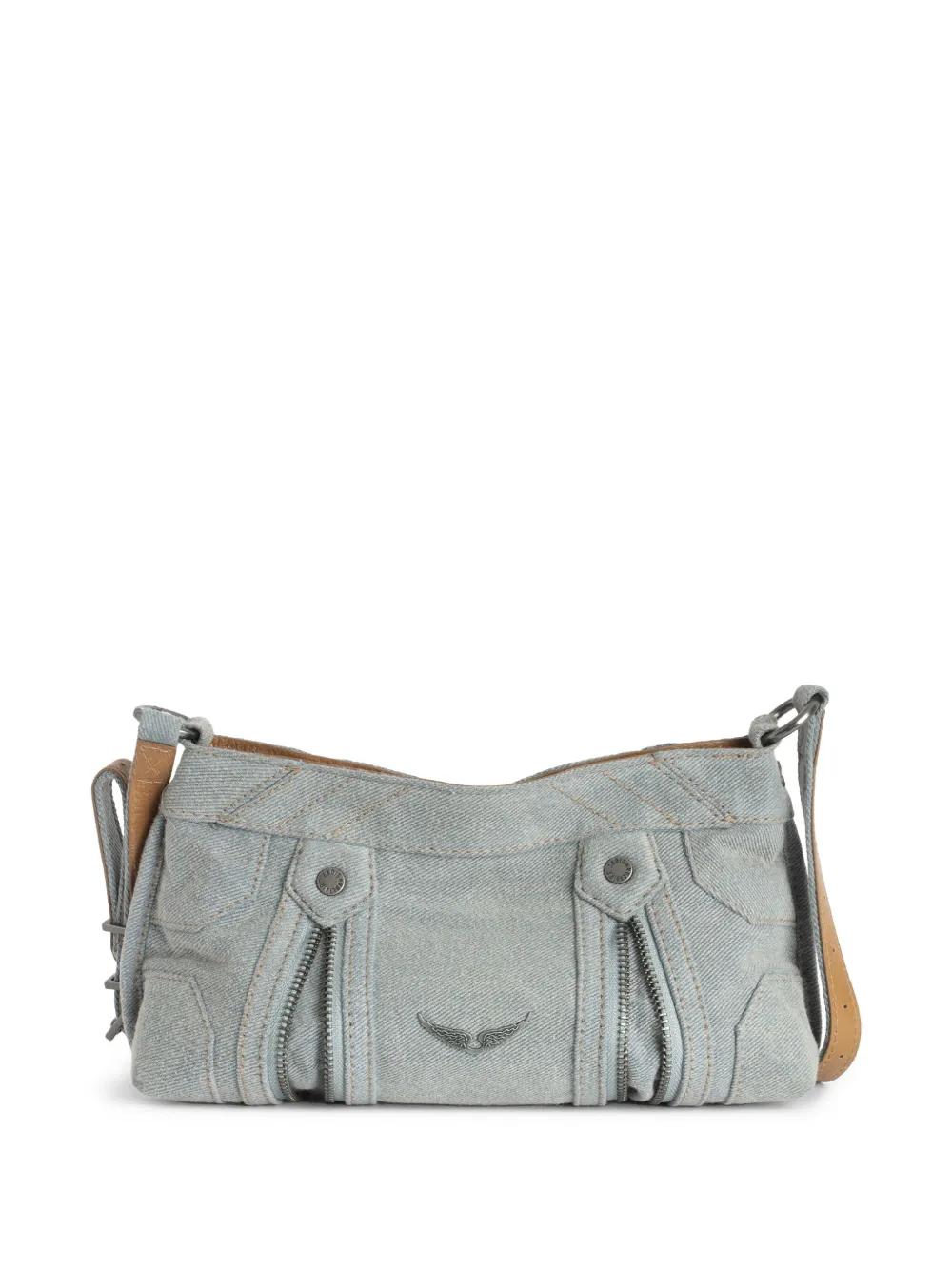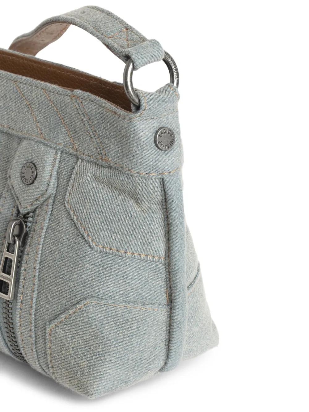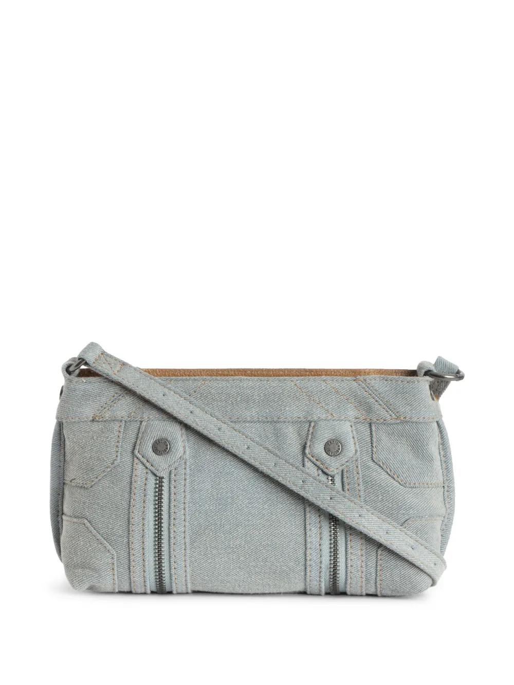 light blue denim top zip fastening adjustable shoulder strap internal zip-fastening pocket