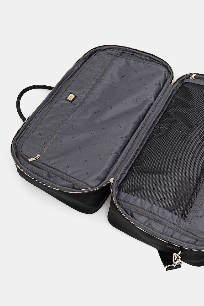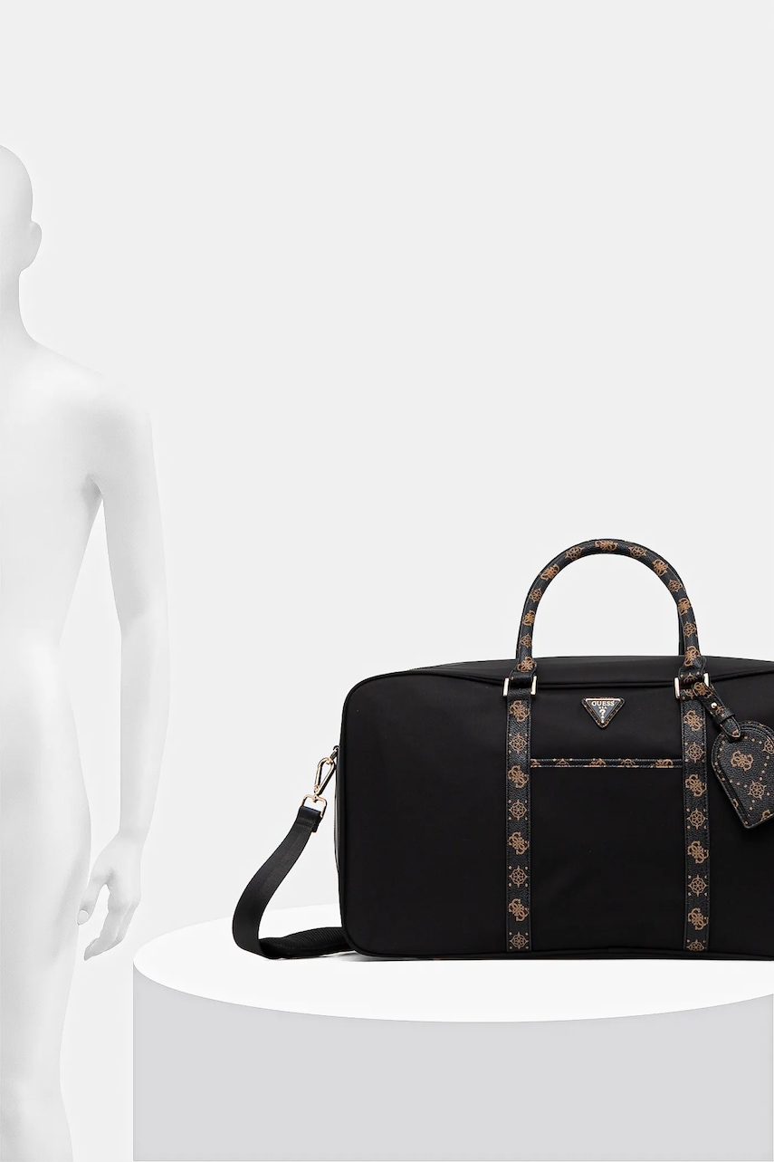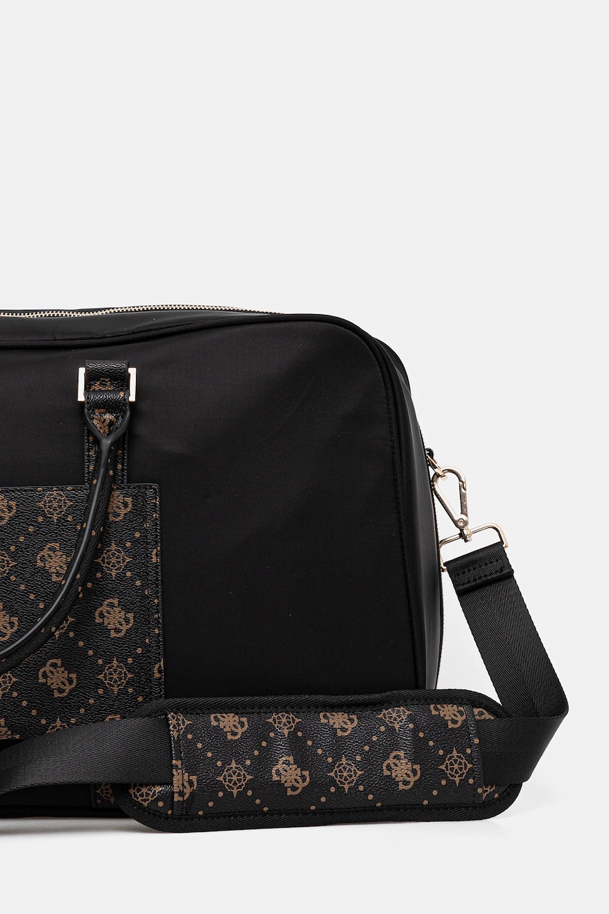 - Zapięcie na dwustronny suwak. - Z przodu wsuwana kieszeń umożliwia przechowywanie kluczy lub innych drobiazgów. - Z tyłu wsuwana kieszeń, która ułatwia bezpieczne przechowywanie telefonu lub innych drobiazgów. - Posiada uchwyty i odpinany pasek z regulacją. - Model rozciąga się do większego formatu walizki. - Posiada dwie komory zapinane na suwak. - Kieszonka wewnętrzna zapinana na suwak. - Model wyposażony w metalowe nóżki, które zabezpieczają spód torebki. - Kieszonki wewnętrzne z siateczki zapinane na suwak. - Głębokość: 22,5 cm. - Wysokość: 29 cm. - Szerokość u podstawy: 52 cm. - Długość uchwytów: 48 cm.` - Długość minimalna paska: 91 cm. - Długość maksymalna paska: 142 cm.