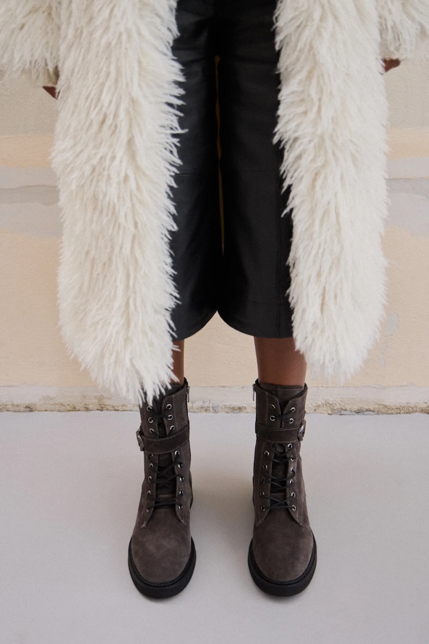 Answear.LAB workery zamszowe kolor szary na płaskim obcasie lekko ocieplone