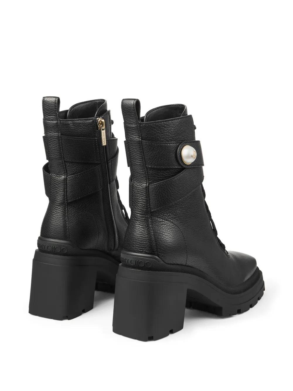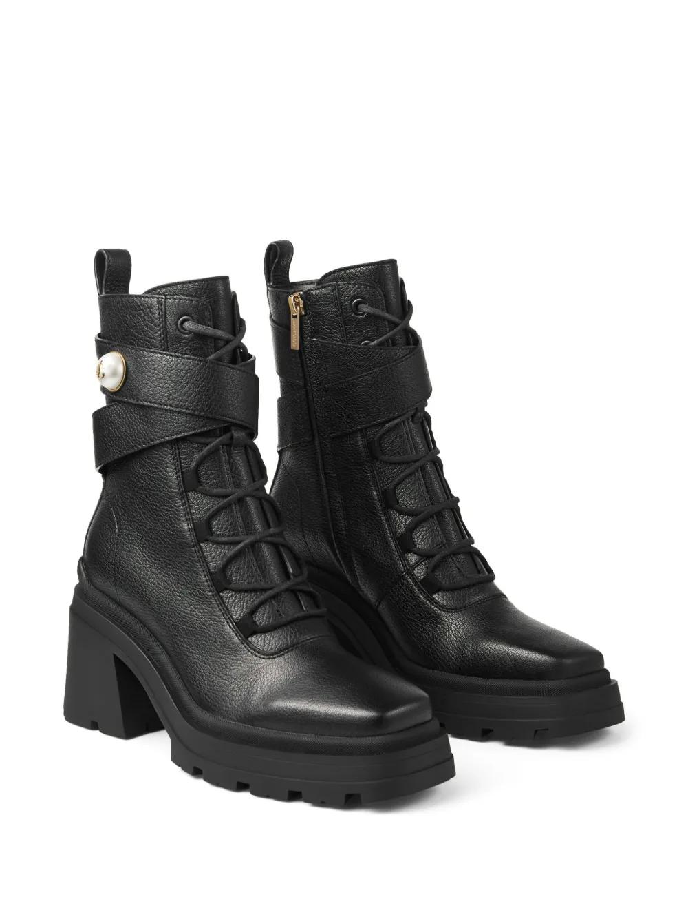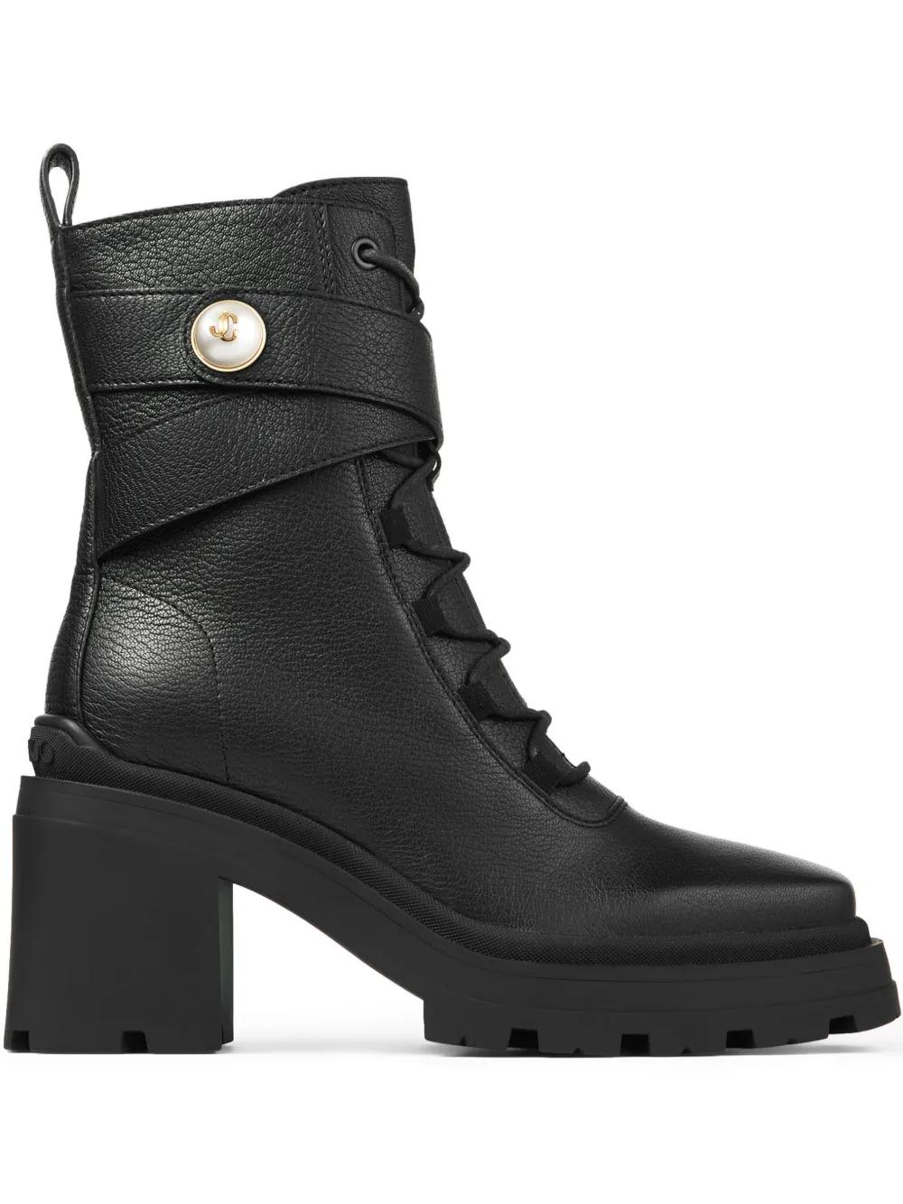 black calf leather gold-tone hardware front lace-up fastening side zip fastening square toe ankle-length high block heel Wardrobe Icon