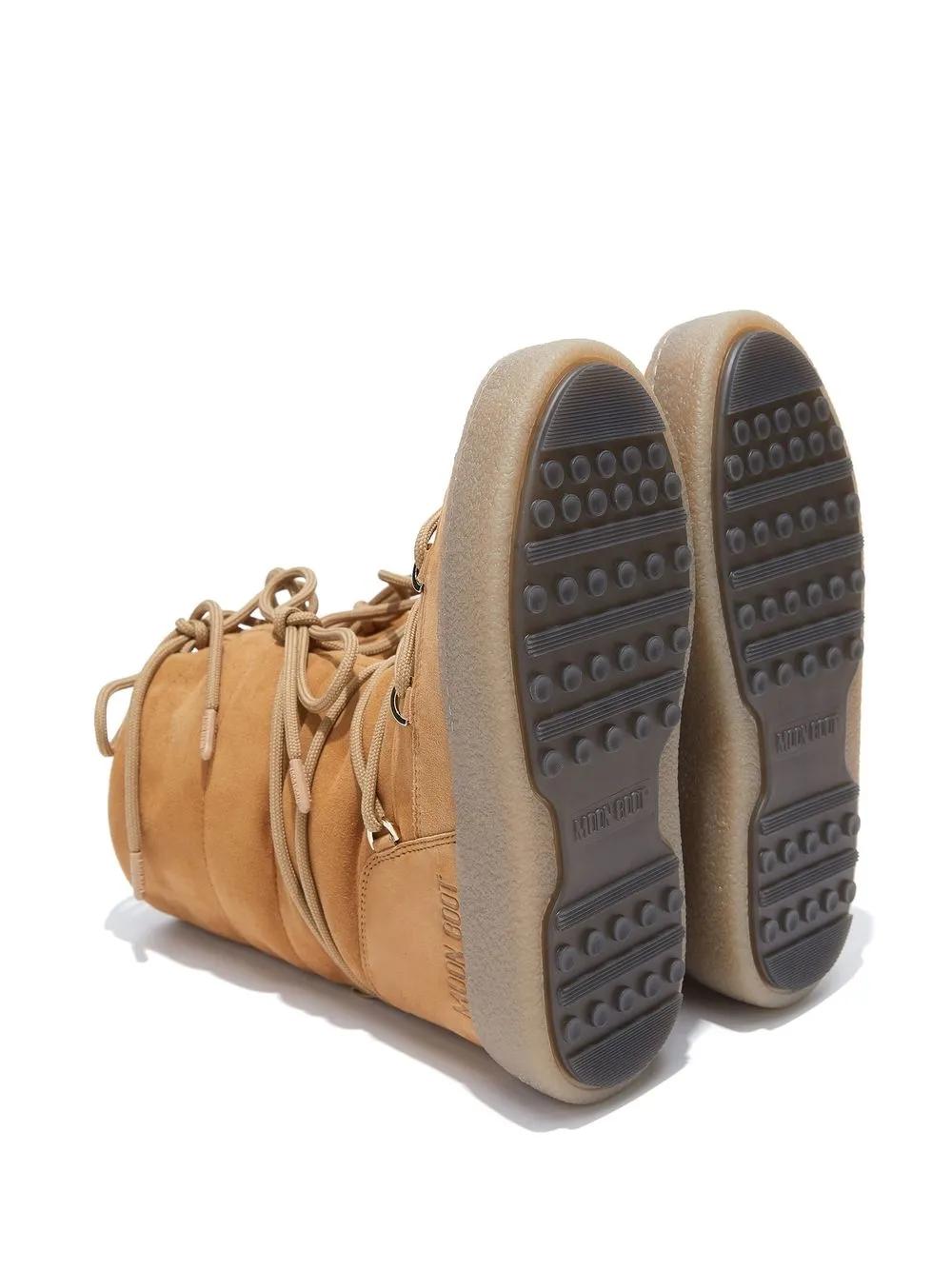 sand beige embossed logo to the side round toe front lace-up fastening branded insole flat rubber sole