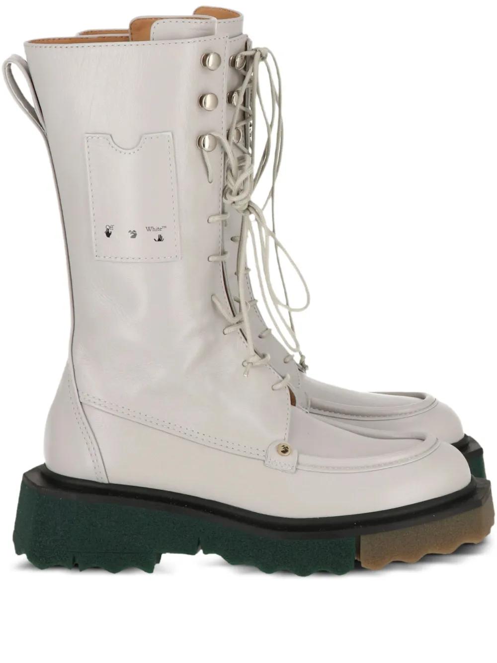 light grey leather upper lace-up fastening platform sole rubber sole round toe