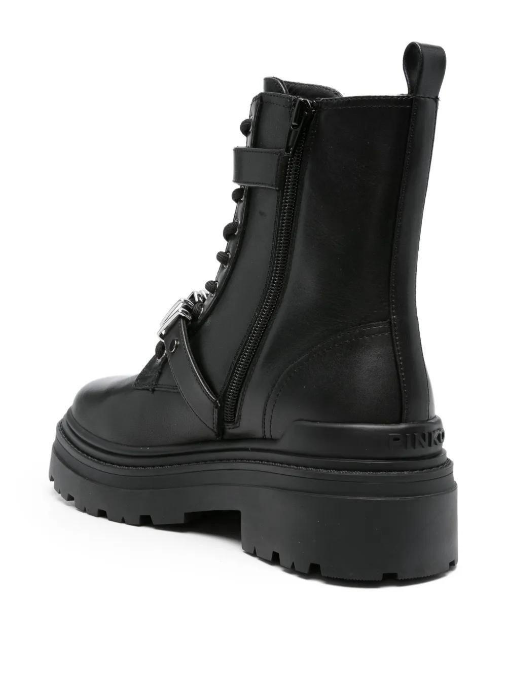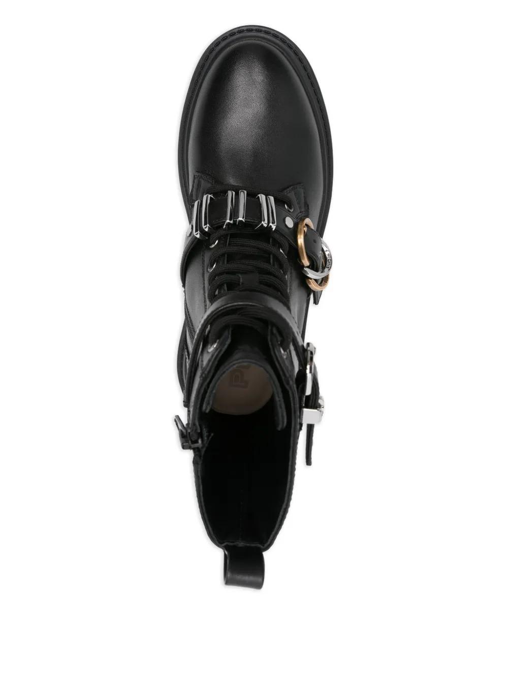 black leather lace-up fastening zip fastening buckle details rubber sole