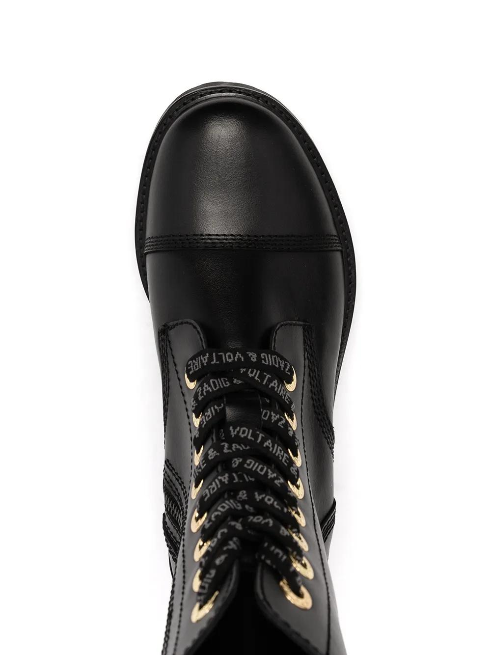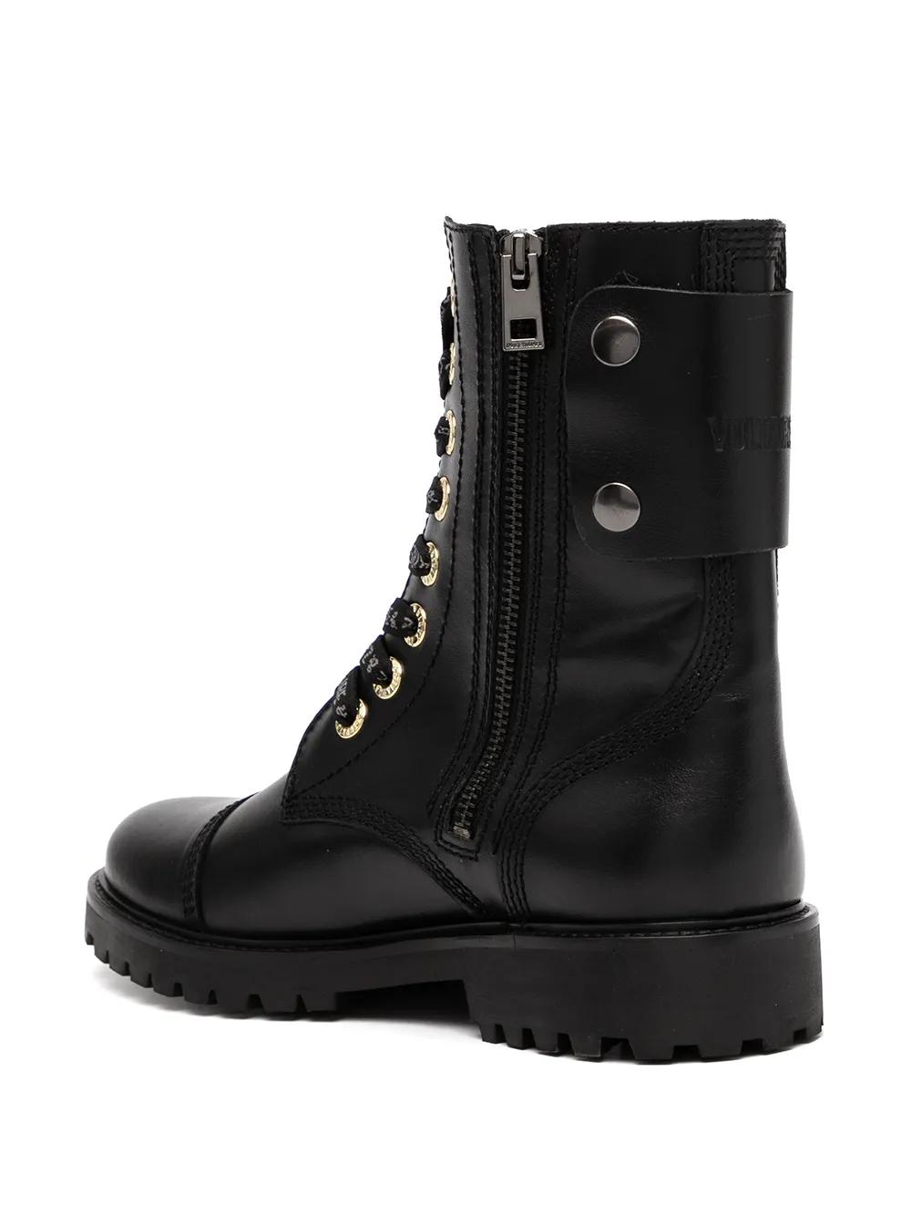 black leather logo print to the side round toe front lace-up fastening side zip fastening snap-button fastening ridged rubber sole ankle-length