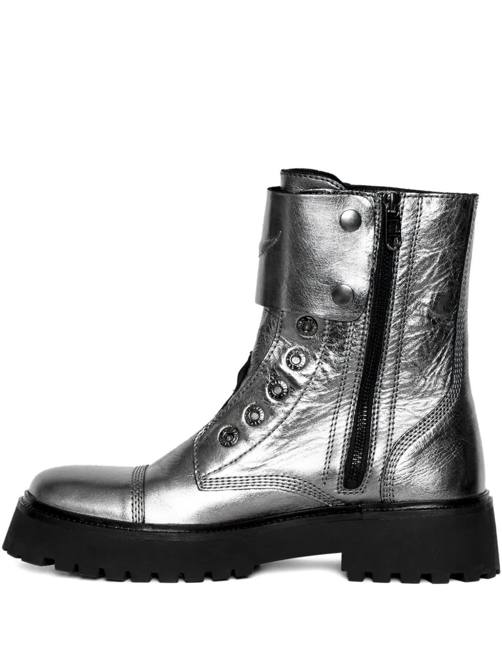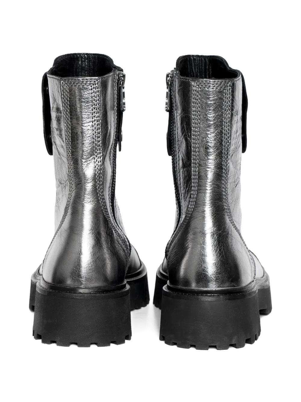 Zadig&Voltaire Joe Fast metallic-effect leather combat boots - Grey