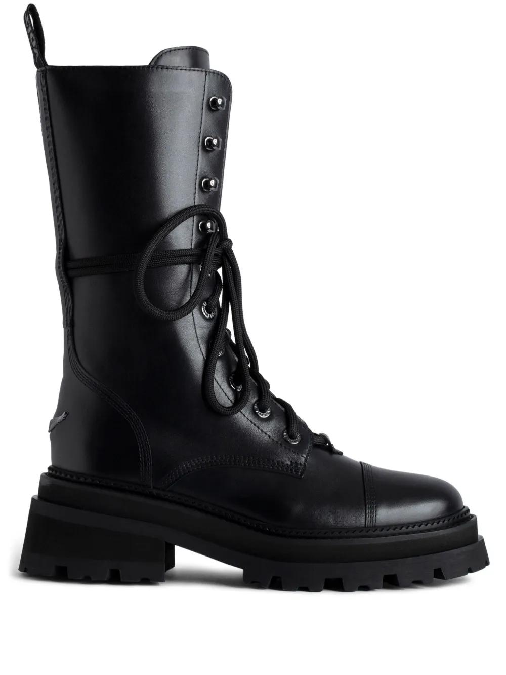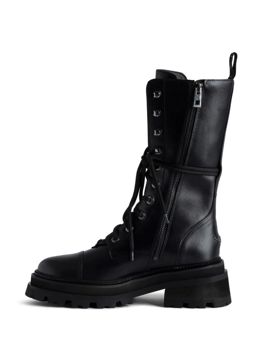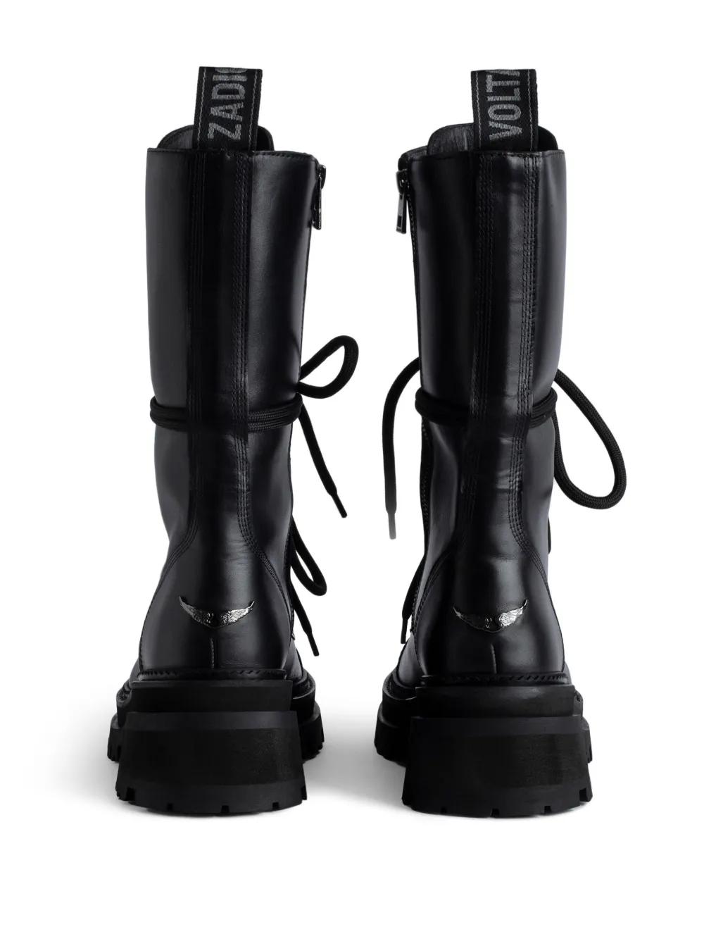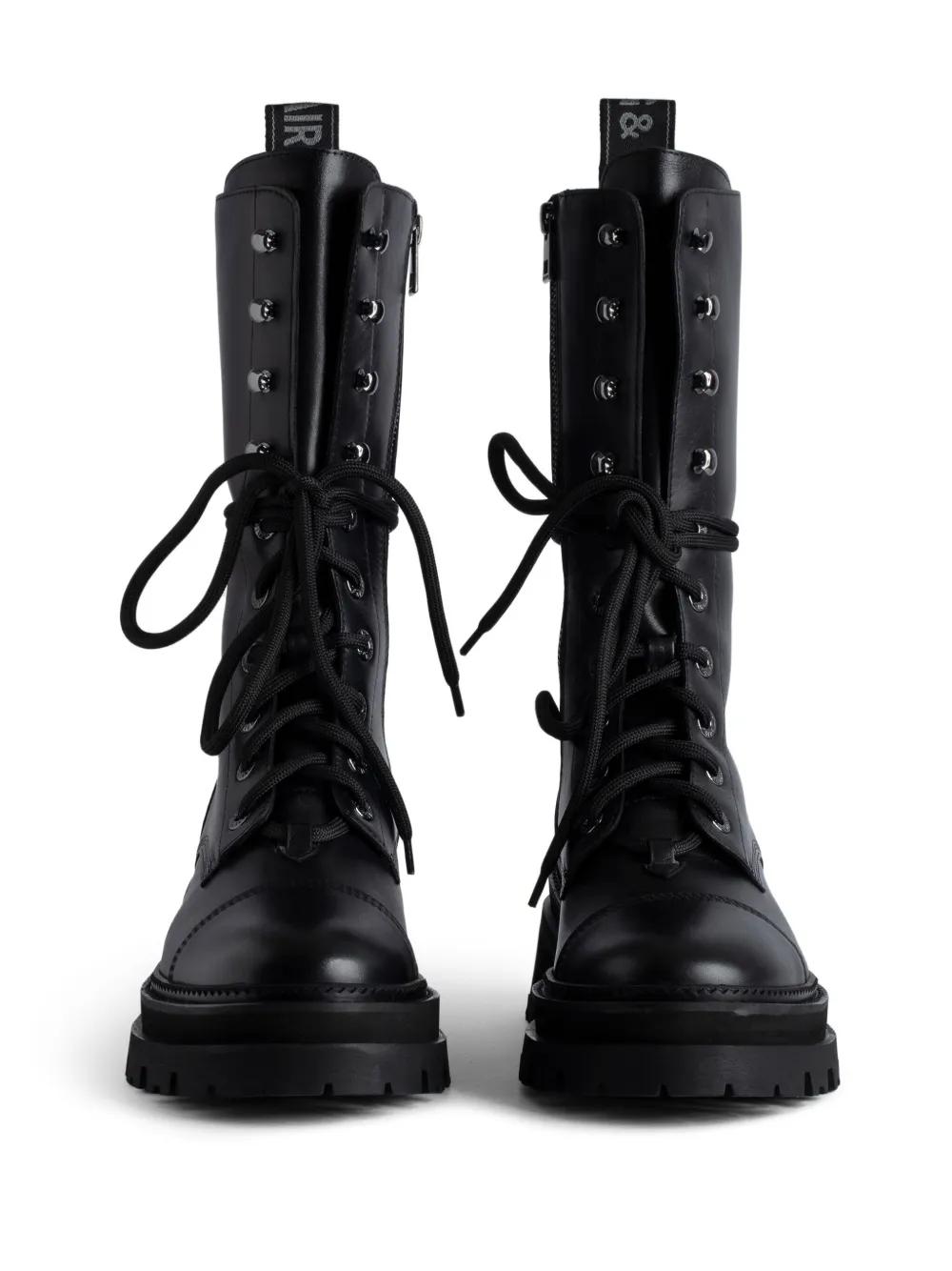 black front lace-up fastening logo pull-tab low stacked heel chunky rubber lug sole