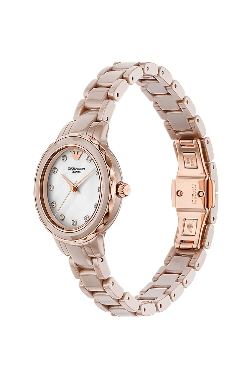 - Kształt koperty: okrągły. - Segmentowa bransoleta. - Materiał koperty i bransolety: stal. - Mechanizm: kwarcowy, zasilany baterią. - Szkło: mineralne (utwardzane, bardzo odporne na stłuczenia, ciężko je zarysować). - Wodoszczelność: WR. 50M (5ATM) - odporny na zachlapania, pływanie powierzchniowe. - Indeksy godzinowe. - Średnica koperty: 32 mm. - Szerokość paska: 12 mm.