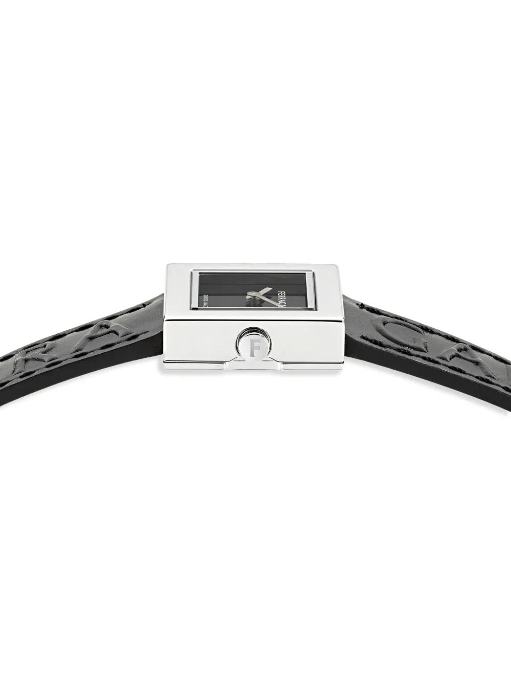 20mm black stainless steel quartz movement square face baton hands sapphire-crystal glass screw-down crown engraved logo leather strap with embossed logo pin-buckle fastening water resistance up to 30m/3 ATM This item comes with a standard one-year warranty from the boutique.