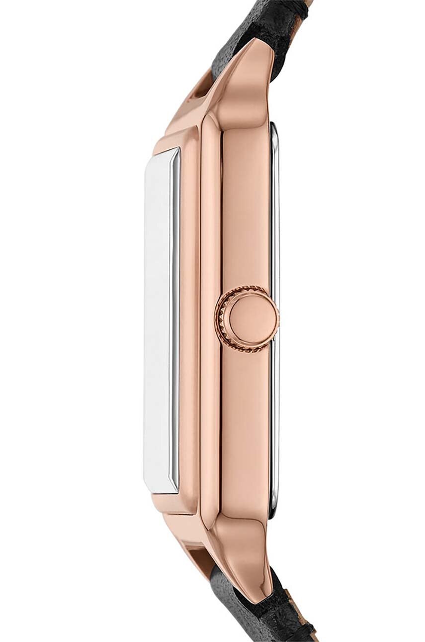 - Kształt koperty: prostokątny. - Materiał paska: skóra naturalna. - Wodoszczelność: WR. 50M (5ATM) - odporny na zachlapania, pływanie powierzchniowe. - Szkło: mineralne (utwardzane, bardzo odporne na stłuczenia, ciężko je zarysować). - Mechanizm: kwarcowy, zasilany baterią. - Posiada datownik.