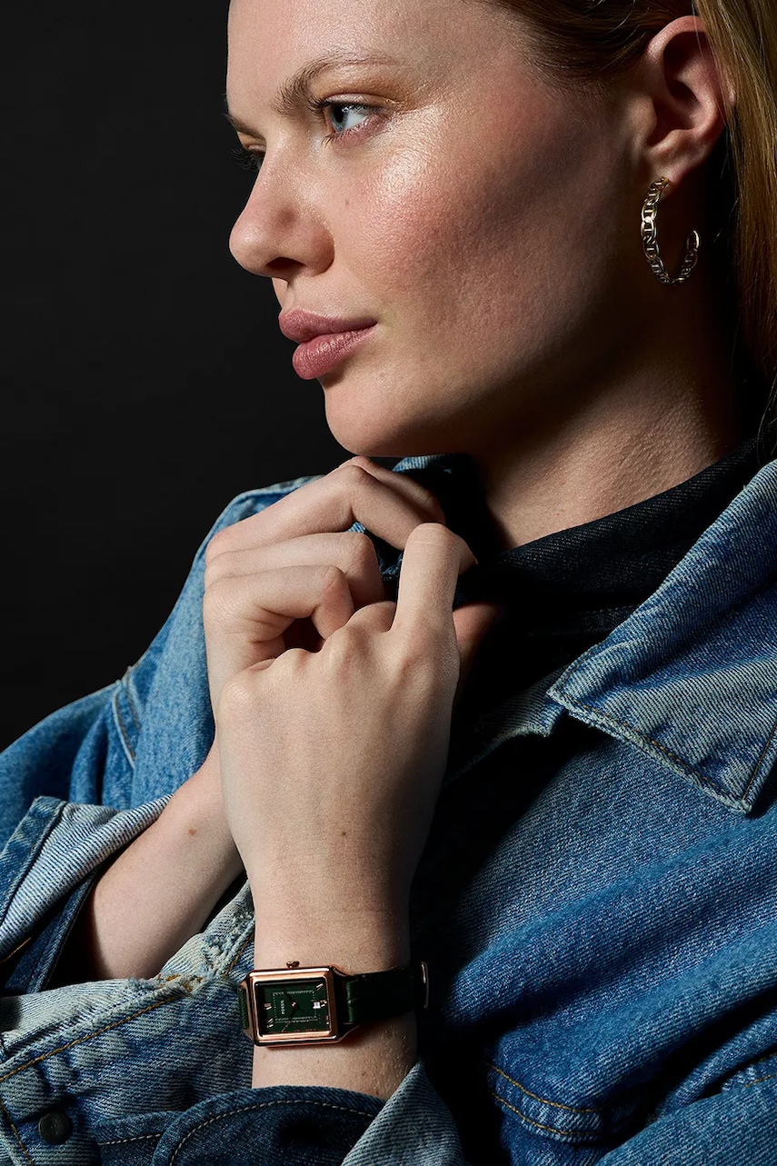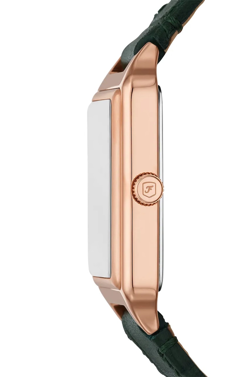 - Materiał koperty: stal szlachetna. - Kształt koperty: prostokątny. - Materiał paska: skóra naturalna. - Wodoszczelność: WR. 50M (5ATM) - odporny na zachlapania, pływanie powierzchniowe. - Szkło: mineralne (utwardzane, bardzo odporne na stłuczenia, ciężko je zarysować). - Mechanizm: kwarcowy, zasilany baterią. - Posiada datownik. - Szerokość koperty: 23 mm.