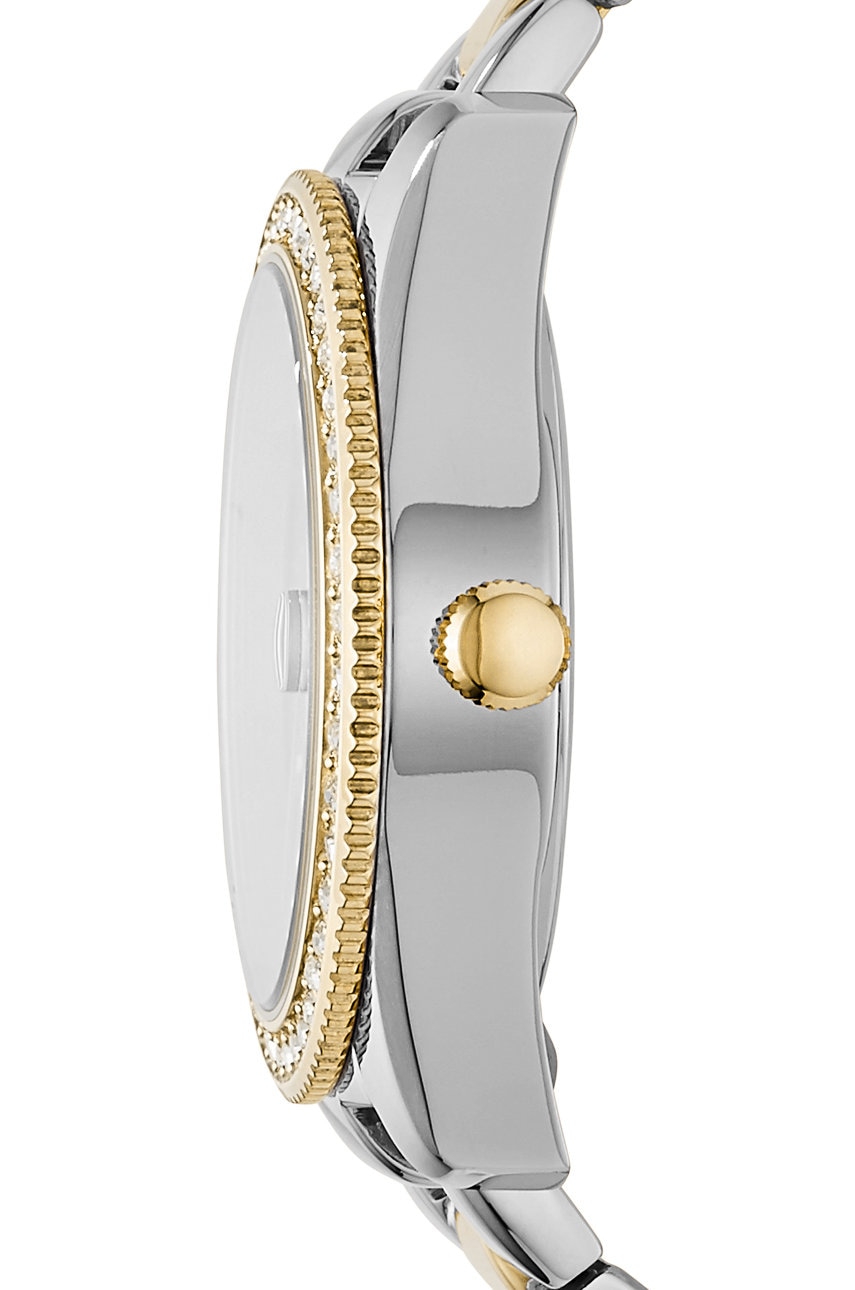 - Kształt koperty: okrągły. - Segmentowa bransoleta. - Materiał koperty i bransolety: stal. - Wodoszczelność: WR. 50M (5ATM) - odporny na zachlapania, pływanie powierzchniowe. - Szkło: mineralne (utwardzane, bardzo odporne na stłuczenia, ciężko je zarysować). - Mechanizm: kwarcowy, zasilany baterią. - Posiada datownik. - Model ozdobiony kryształkami. - Średnica koperty: 32 mm. - Grubość koperty: 10 mm.