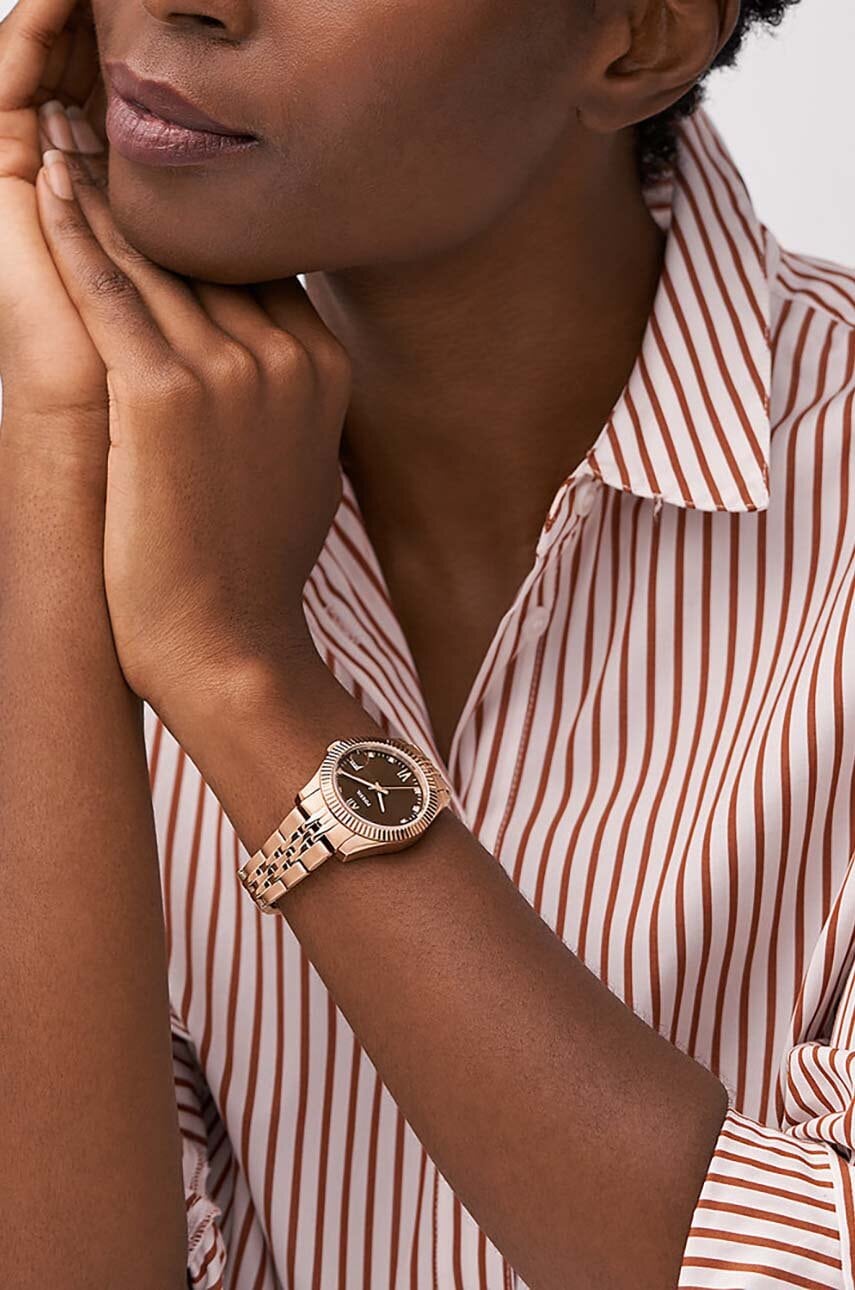 - Materiał koperty i bransolety: stal. - Segmentowa bransoleta. - Posiada datownik. - Mechanizm: kwarcowy, zasilany baterią. - Szkło: mineralne (utwardzane, bardzo odporne na stłuczenia, ciężko je zarysować). - Wodoszczelność: WR. 50M (5ATM) - odporny na zachlapania, pływanie powierzchniowe. - Szerokość koperty: 32 mm. - Szerokość paska: 16 mm.