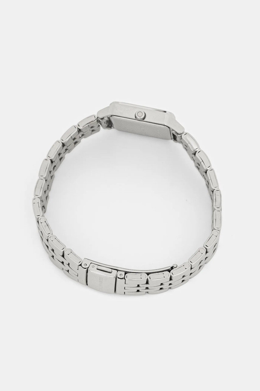 Uwaga: oryginalna rozmiarówka produktów tej marki jest rozmiarówką włoską. Informujemy, że rozmiary na metkach mogą różnić się od zamawianych ze względu na zastosowany przelicznik. - Kształt koperty: kwadratowy. - Materiał paska: stal szlachetna. - Materiał koperty: stal szlachetna. - Wodoszczelność: WR. 30M (3ATM) - odporny na zachlapania. - Mechanizm: kwarcowy, zasilany baterią. - Indeksy godzinowe. - Model zapakowany w pudełko firmowe. - Szerokość paska: 15 mm. - Grubość koperty: 7 mm. - Szerokość koperty: 25 mm.
