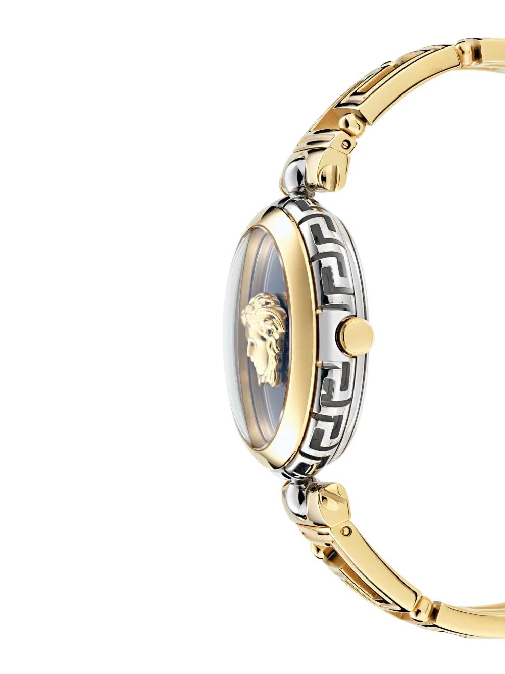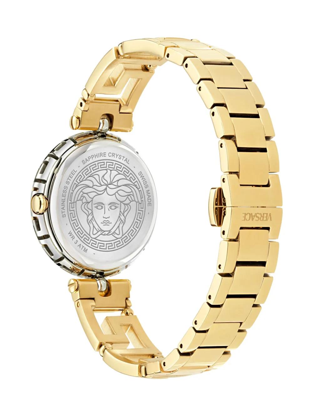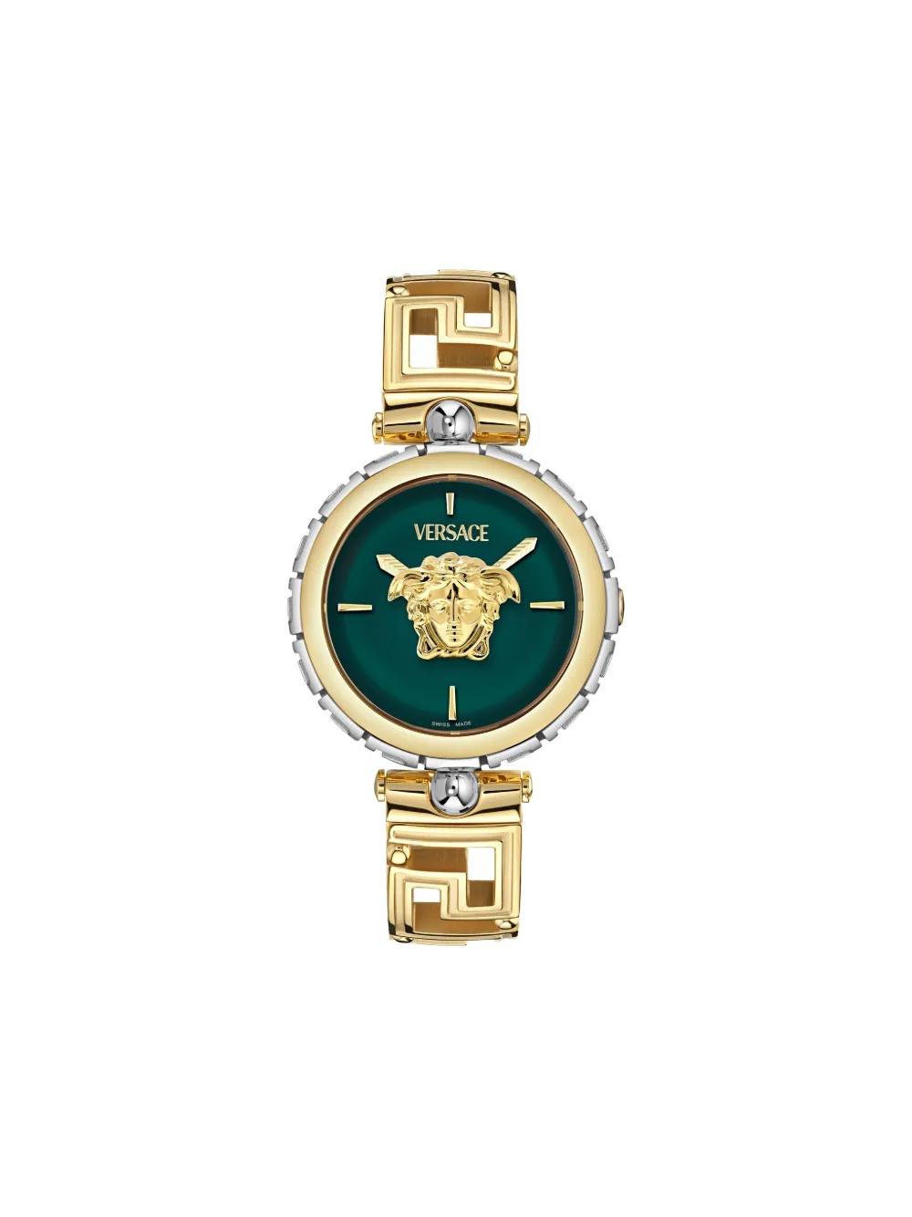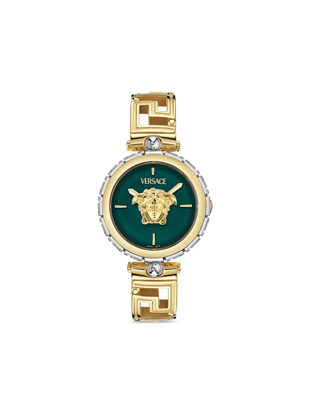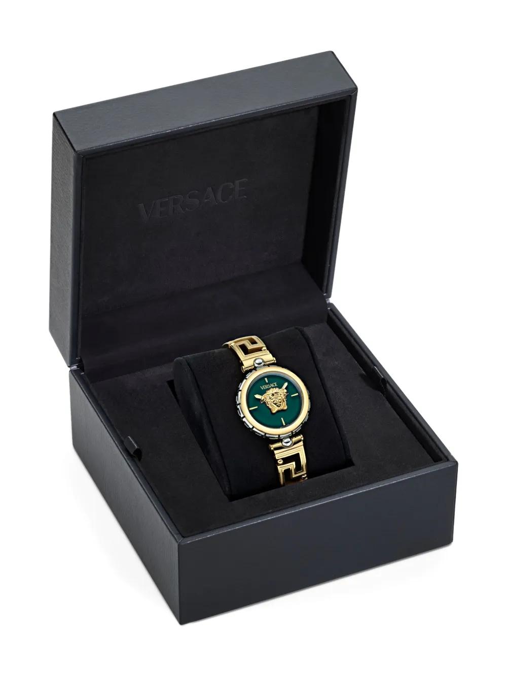 gold-tone 34mm round case green dial medusa head dial feature quartz movement crown This item comes with a standard one-year warranty from the brand.