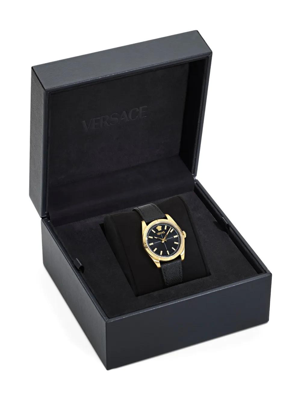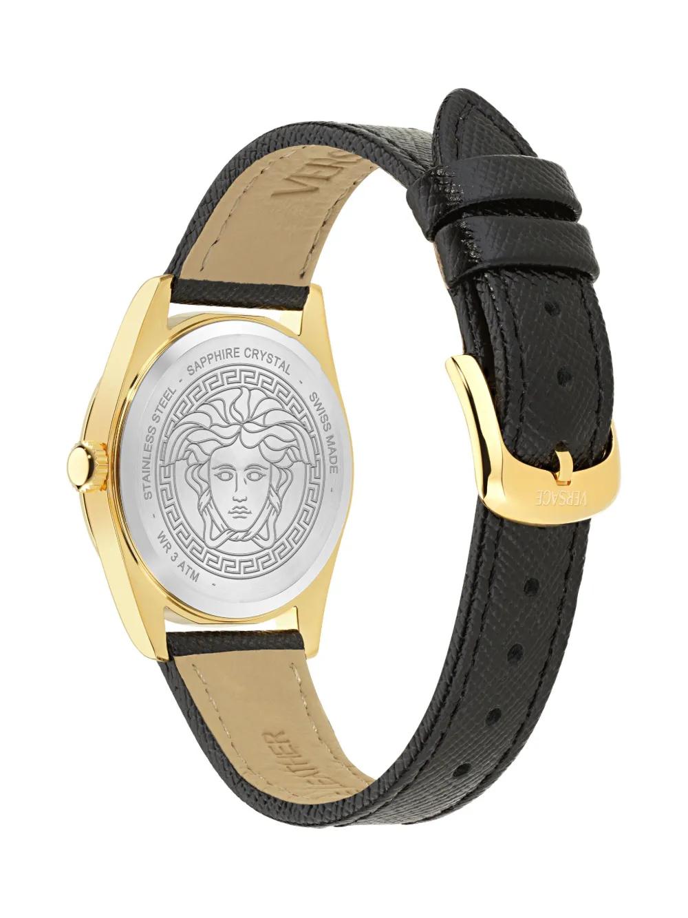black 32mm round case shape swiss movement crown leather strap This item comes with a standard one-year warranty from the brand.