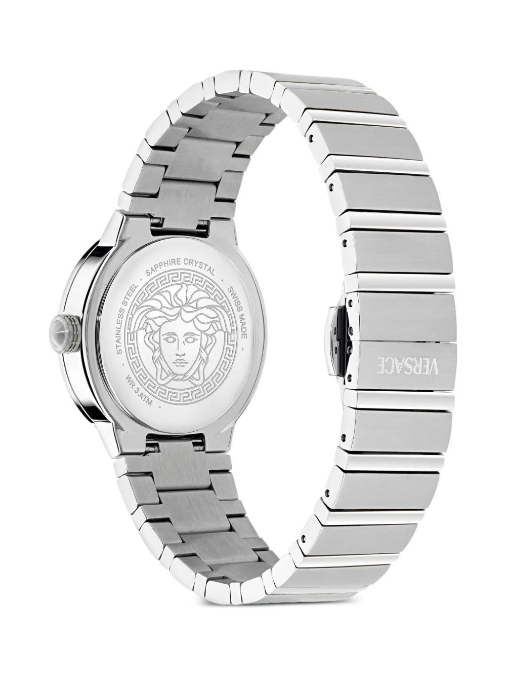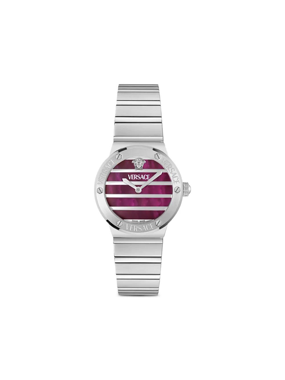 burgundy dial round case 33mm case size striped dial Medusa head detail smooth bezel swiss quartz movement water resistance up to 30m/3 ATM This item comes with a standard one-year warranty from the boutique.